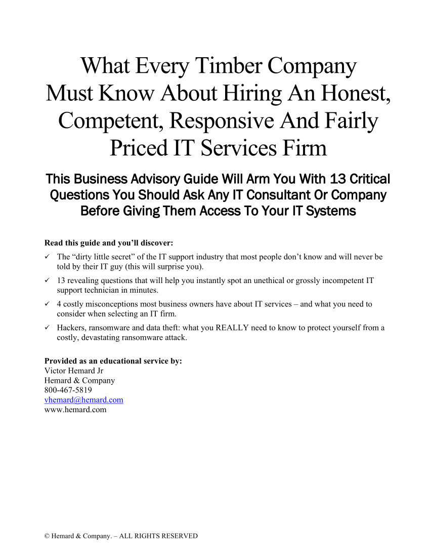 What Every Timber Company Must Know About Hiring An Honest, Competent, Responsive And Fairly Priced IT Services Firm